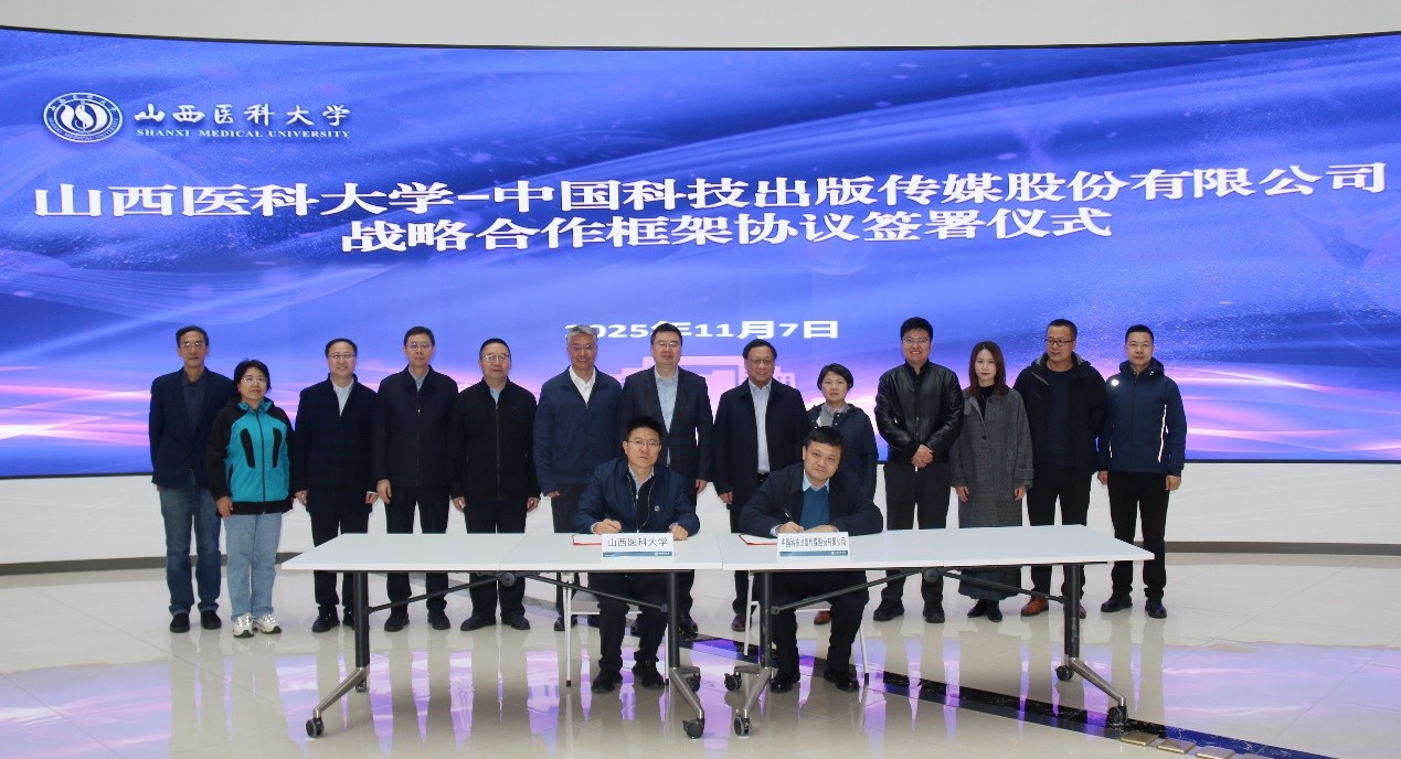 11月7日上午, 山西医科大学—中国科技出版传媒股份有限公司战略合作框架协议签署仪式在山西医科大学圆满举行,双方携手开启共筑学术高地、服务医学创新的新篇章。